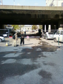 A Belvárosi Plébániatemplom mellett az Erzsébet híd lábánál